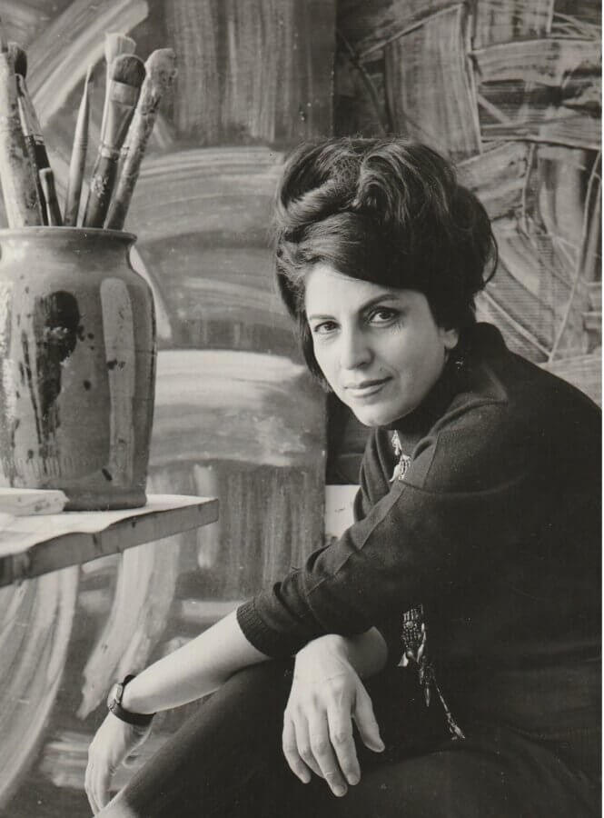 May 29, 2024, marks the one-hundredth birth anniversary of Behjat Sadr, the pioneering Iranian artist! Born in Arak, Iran, Sadr grew up in a household open to the world and simultaneously observant of Iranian rituals and traditions. Due to her father’s career as a government employee, Sadr’s childhood was spent moving from one region to another—from “central Iran and [its] deserts to the north and [its] green, orange, and red trees.”[1] Sadr completed her primary and secondary studies in Tehran, where her family eventually settled. She came of age as the Allies invaded the country in the summer of 1941, a period she recalls in her journals as a chaotic year. Despite the turmoil caused by the invasion, and encouraged by her mother, Sadr pursued a career in teaching and became a secondary school teacher in 1943.