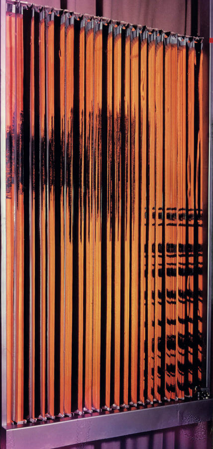 J’ai introduit la troisième dimension dans mes œuvres cinétiques. Au lieu de stores vénitiens, j’aurais pu utiliser des lignes verticales ou horizontales, mais la troisième dimension apportait un sens supplémentaire qui me correspondait bien. Je préfère ces volets tridimensionnels de couleur vive qu’une porte ancienne achetée un jour par hasard et dont j’aurais pu me servir dans mon travail pour introduire la troisième dimension. Récupérer les restes des morts pour danser avec eux, comme on le voit faire partout, cela ne m’intéresse pas. Ce que j’aime, c’est faire du neuf avec des matériaux d’aujourd’hui.
